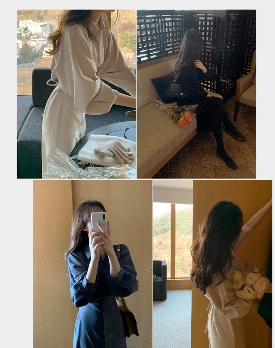 2022 Spring New Korean Version Retro Temperament Waist Slimming Shirt Dress Female French Light Cooked Over The Knee Long Dress